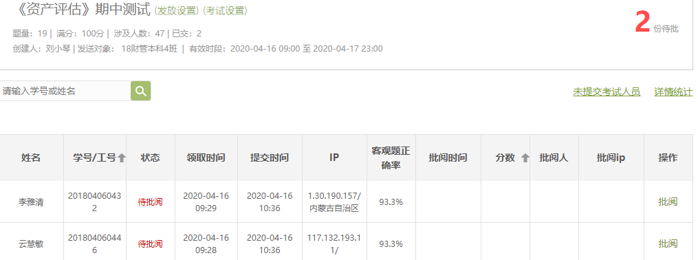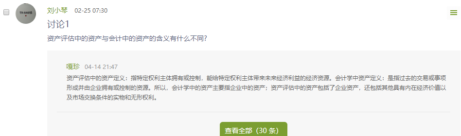 本学期担任了18财管本科《资产评估》课程的线上教学工作,提前一周将课程资料上传至超星平台,包括课程视频、课件、题库等教学材料,并在上课之前发布课程通知、作业、讨论,员工可以通过学习通App提前学习相关知识点。通过腾讯会议直播授课,主要针对教学内容的重难点进行讲解,并与员工互动答疑,保证员工在家也能够及时获取知识。相关数据图所示: