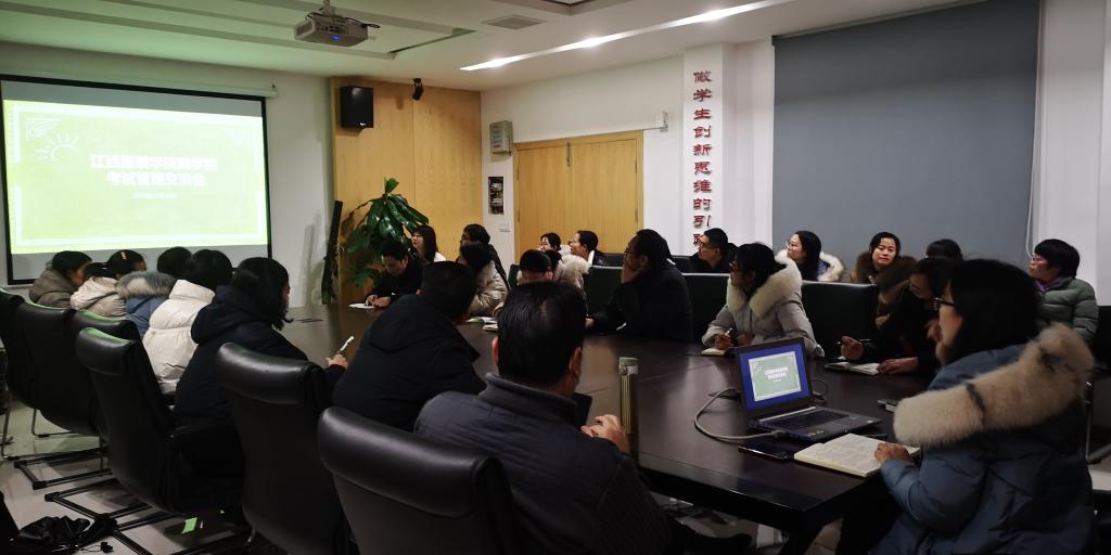 【伟德国际bevictor1946 讯】本学期的期末考试即将来临,为了保证期末考试各项工作的顺利进行,2020年12月29日中午,伟德国际bevictor1946在三楼会议室召开了考试管理交流会,经理谭兆国、教学副经理罗芳、行政副经理刘春生、院办主任蔡芬、教学秘书和全体专任教师参会,会议由罗芳副经理主持。