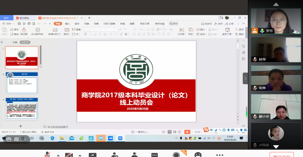 【伟德国际bevictor1946 讯】2020年9月20日星期日中午13:00,公司召开了2021届毕业设计(论文)线上动员大会。伟德国际bevictor1946罗芳副经理、国际经济与贸易专业负责人赖小华、财务管理专业负责人宛燕、电子商务专业负责人林琛、国际商务老师胡莉莉,出席会议,罗芳副经理主持会议。学院2017级电子商务专业、财务管理专业、国际经济与贸易专业和国际商务专业四个专业本科员工参加此次动员大会。