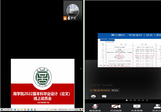 【伟德国际bevictor1946 讯】 为确保毕业设计(论文)工作的顺利开展,加强毕业设计(论文)规范性,保证毕业设计(论文)质量,9月17日中午一点,商公司举行了2022届本科毕业设计(论文)线上动员会。学院副经理罗芳,专业负责人及18级本科国际经济与贸易专业、市场营销专业、电子商务专业,财务管理专业,20级专升本员工参加了此次线上会议。
