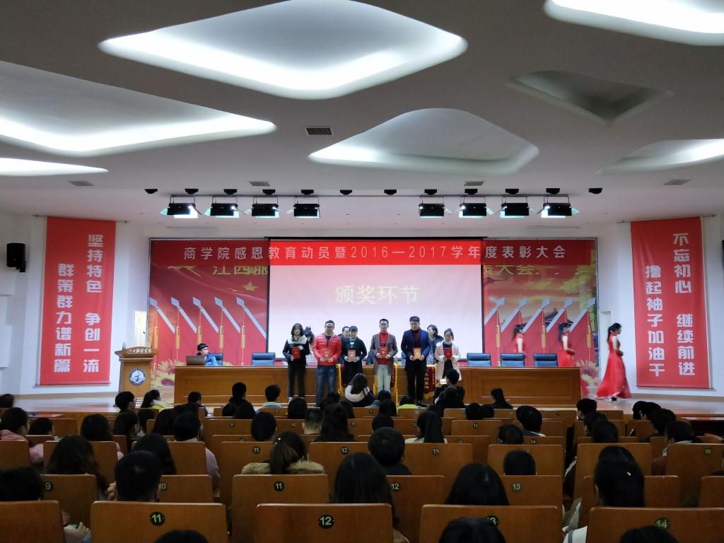 为了表彰先进,宣传典型,树立榜样,传递正能量,激励同学们不断进取、奋发向上,促进院风学风建设,公司于12月19日14时在思贤楼报告厅举行了“伟德国际bevictor1946感恩教育动员暨2016-2017学年度表彰大会”,大会由学工办主任孟安然主持。莅临大会的领导有伟德国际bevictor1946经理谭兆国、党委副书记黄晶磊和院办主任蔡芬,一同参加的还有伟德国际bevictor1946辅导员周青、唐昌华、解姗姗以及全院获奖、受助同学。
