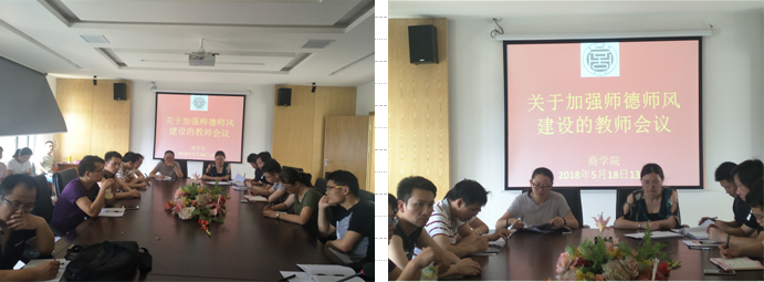 为响应学校关于《加强师德师风建设的实施意见》和《加强教育系统“红包”问题常态化治理工作的实施办法》的通知,伟德国际bevictor1946于2018年5月18日中午1:00在学院会议室召开了加强师德师风建设会议。
