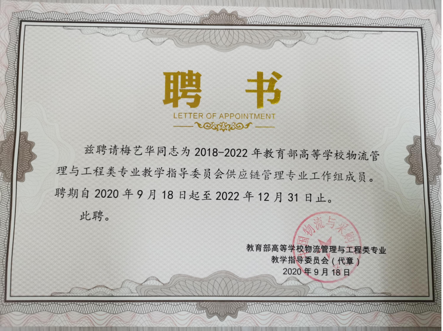 本届研讨会设置了新文科背景下物流与供应链管理专业建设与创新论坛、线上线下混合教学模式探索与实践论坛、智慧物流背景下产学研融合发展论坛、第八届物流专业经理/系主任论坛--推进一流专业与一流课程体系建设与发展、第五届高校青年教师科研高峰论坛、物流一流专业与学科理论体系建设圆桌会等多个论坛,共有40多位院校、行业、企业专家登台演讲,并与会议代表进行研讨与交流。26日晚,物流教指委重新组建的物流管理专业、物流工程专业、供应链管理专业、采购管理专业、冷链物流专业、青年教师工作组等六个工作组分别召开圆桌会议,公司代表参与了物流管理专业、供应链管理专业工作组的研讨并发言。智慧物流教研室梅艺华教授受聘为教育部高等学校物流管理与工程类专业教学指导委员会供应链管理专业工作组成员。