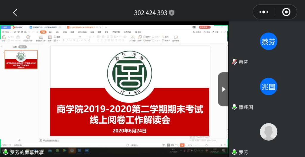 【伟德国际bevictor1946 讯】根据学校教学检查工作安排,伟德国际bevictor1946通过腾讯会议于6月24日上午10:00召开线上阅卷工作解读会。经理谭兆国、教学副经理罗芳、行政副经理陈淑云、院办主任蔡芬、各教研室主任、教学秘书以及任课教师参加了此次会议。