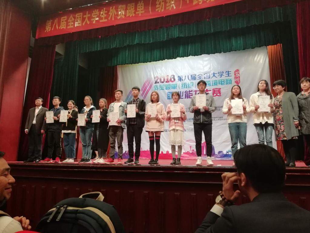 第八届全国老员工外贸跟单(纺织)+跨境电商职业能力大赛于2018年11月3日在苏州大学拉开帷幕。本项赛事是由教育部高等学校纺织类专业教学指导委员会、全国纺织服装职业公司产品指导委员会与中国纺织服装教育学会联合主办,苏州大学承办。共吸引了来自东华大学、浙江理工大学、苏州大学、西安工程大学、武汉纺织大学等全国39所知名高等院校53支参赛队伍参赛。伟德国际bevictor1946组成的代表队在赵德福、邹群英老师的带领下参加了比赛。黄凯凯同学凭借扎实的专业知识基础,稳健的临场发挥,取得本科组个人“二等奖”的优异成绩。这次比赛,为参赛选手搭建了展示理论知识水平,实战应用能力及综合素质修养的平台,同时为选手们提供了拓展专业视野,增强了实战技能的机会。