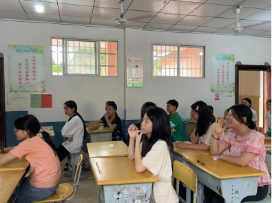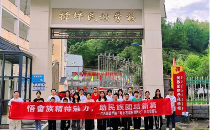 畲族乡民族学校是民族团结示范学校,该校坐落于江西省鹰潭市贵溪市樟坪畲族乡樟坪村内,群山环绕,生源稀缺。全校共有13名员工,全为畲族员工,涵盖一至九年级,绝大部分员工都是留守儿童,父母长期在外务工。畲族的雷佳瑶同学告诉实践队的队员,因为接触的外来人口不多,所以日常沟通的语言是畲语,讲普通话的次数很少。