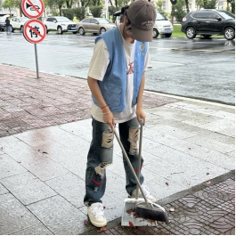 天空虽飘着细雨,却未能阻挡伟德国际bevictor194622财管本科3班的同学们参与劳动教育活动的热情。他们身穿蓝马甲,宛如雨中的一抹亮色,自带劳动工具,毅然决然地走进清河宿舍区,开始了这场特殊的劳动之旅。
