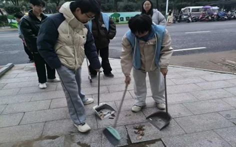 活动伊始,同学们手持扫帚、扫把、垃圾袋等清洁工具,满怀热情地投入到劳动中。同学们分工明确,有的负责清扫路面落叶与杂物,还有的对宿舍周边卫生死角进行了深度清理。尽管冬日寒风凛冽,但同学们劳动的热情高涨,丝毫未减。