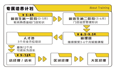 门店管培生项目,致力于培养门店管理者。集团配备完善的培养与晋升体系,通过6个月的培养期,让同学们全面熟悉零售门店基础业务&运营管理,逐步成长为优质的管理者。