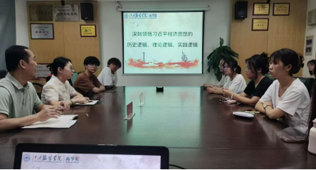 董事长助理尹娜娜从习近平经济思想的时代背景和实践基础、习近平经济思想的核心要义、习近平经济思想蕴含的世界观和方法论三个方面,帮助员工深刻领悟习近平经济思想蕴含的历史逻辑、理论逻辑、实践逻辑,掌握其思想精髓和核心要义。