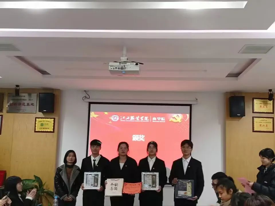 王国基和项悦、崔佳瑶、胡海新、刘文鑫组同学颁奖